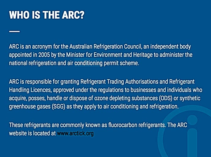 Australian Refrigeration Council (ARC) Authorised No: AU 54227